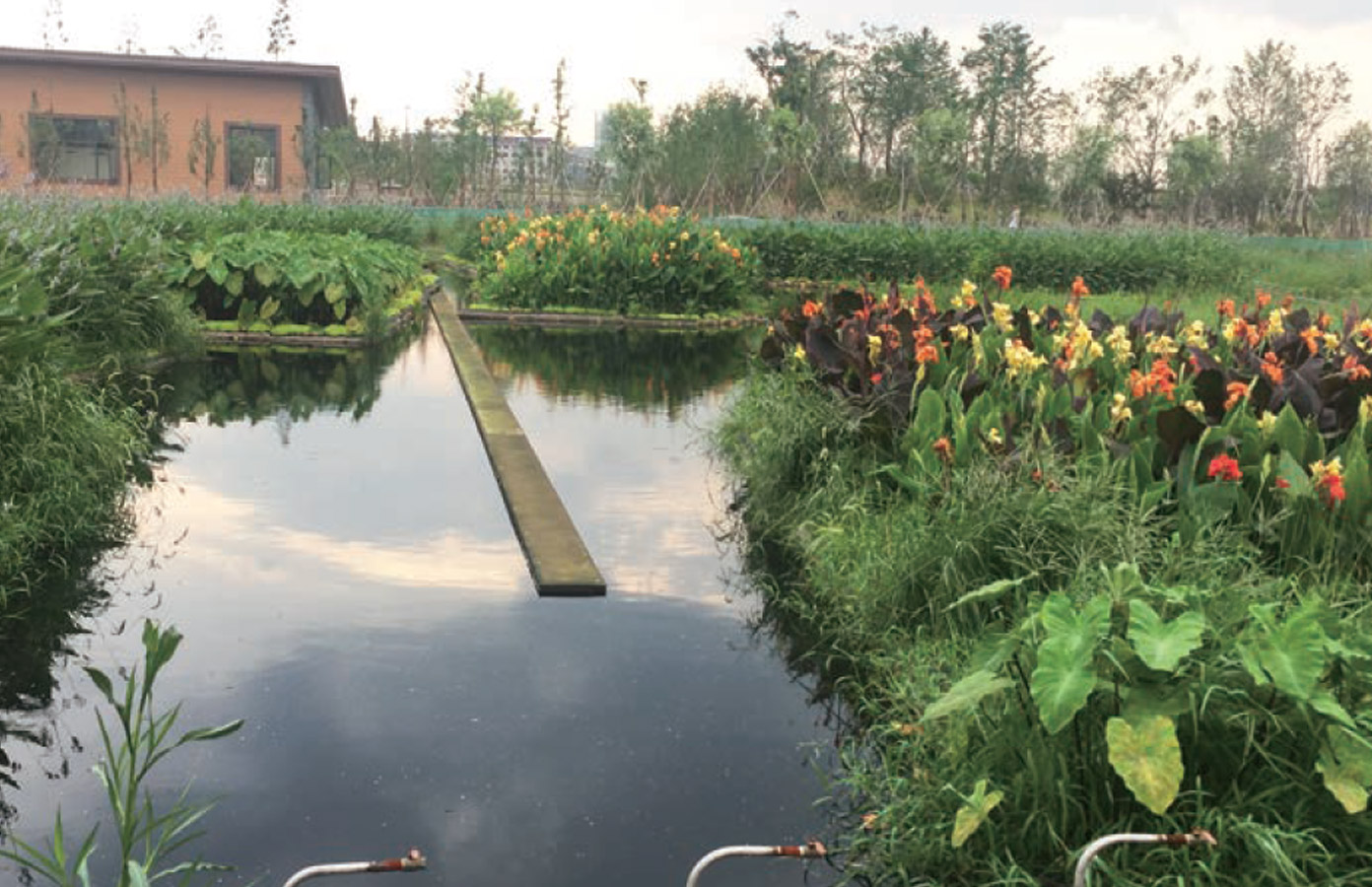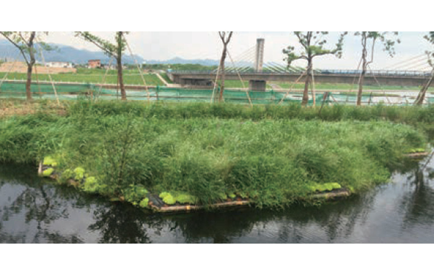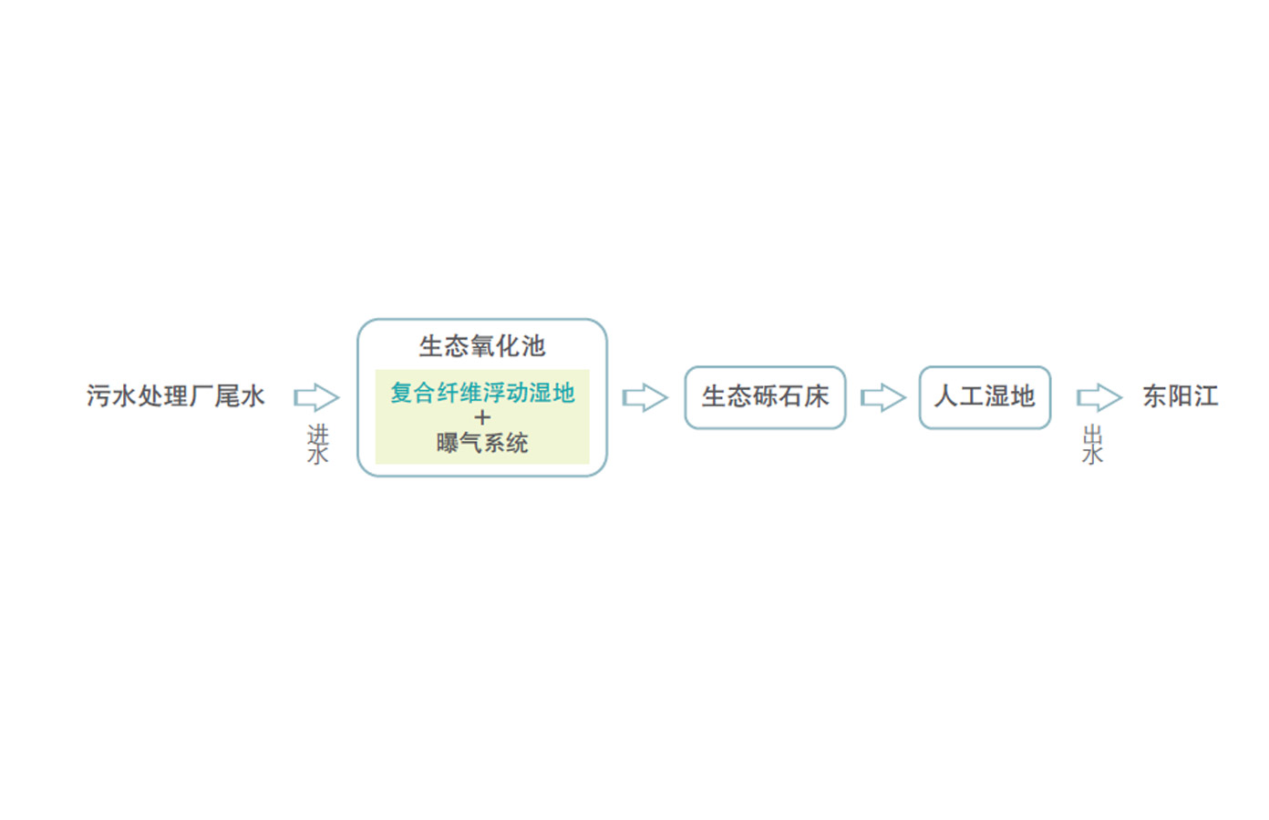 東陽市江濱景觀帶濕地公園,以生態(tài)氧化池與人工濕地為主要工藝,深度凈化東陽市污水處理廠尾水后排入東陽江,以保障東陽江入水水質,處理規(guī)模6萬噸/天。復合纖維浮動濕地作為生態(tài)氧化池的核心技術,在污水處理廠尾水進入人工濕地前,對尾水進行預處理,提高尾水的可生化性,降低人工濕地污染物處理負荷,并降低人工濕地常年運行的堵塞風險。