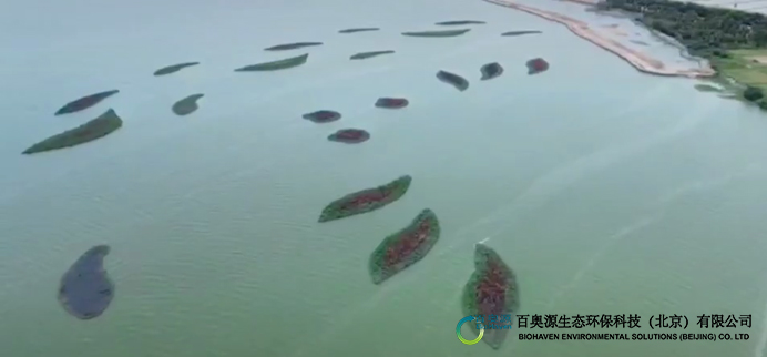 利用星羅棋布的流線型浮動(dòng)濕地小島,在陽(yáng)澄湖南肖涇水域中打造出獨(dú)特的水上群島景觀,小島在恢復(fù)水生態(tài)的同時(shí),也為鳥類提供了棲息繁衍的場(chǎng)所,同時(shí)具備水體凈化功能。