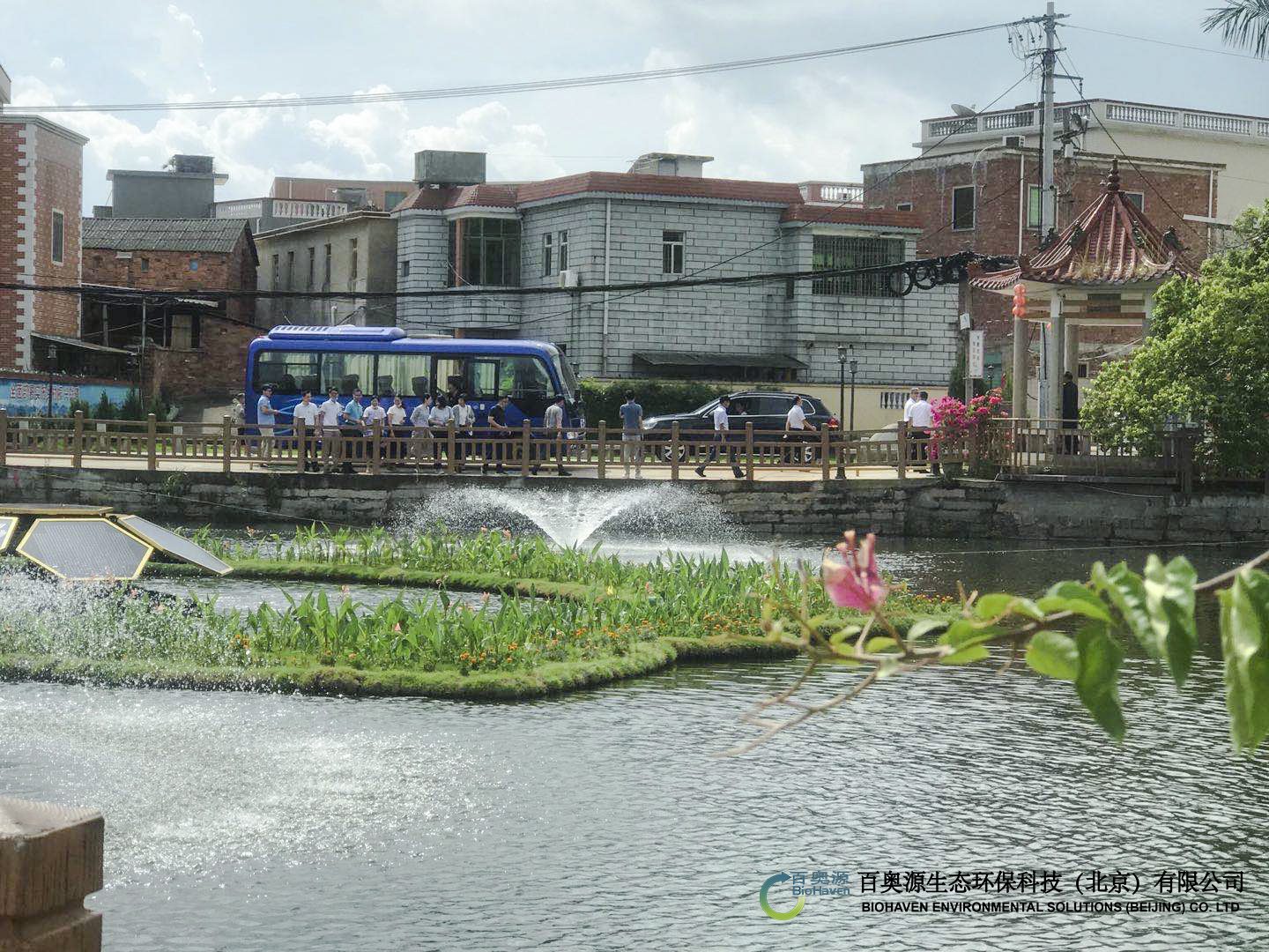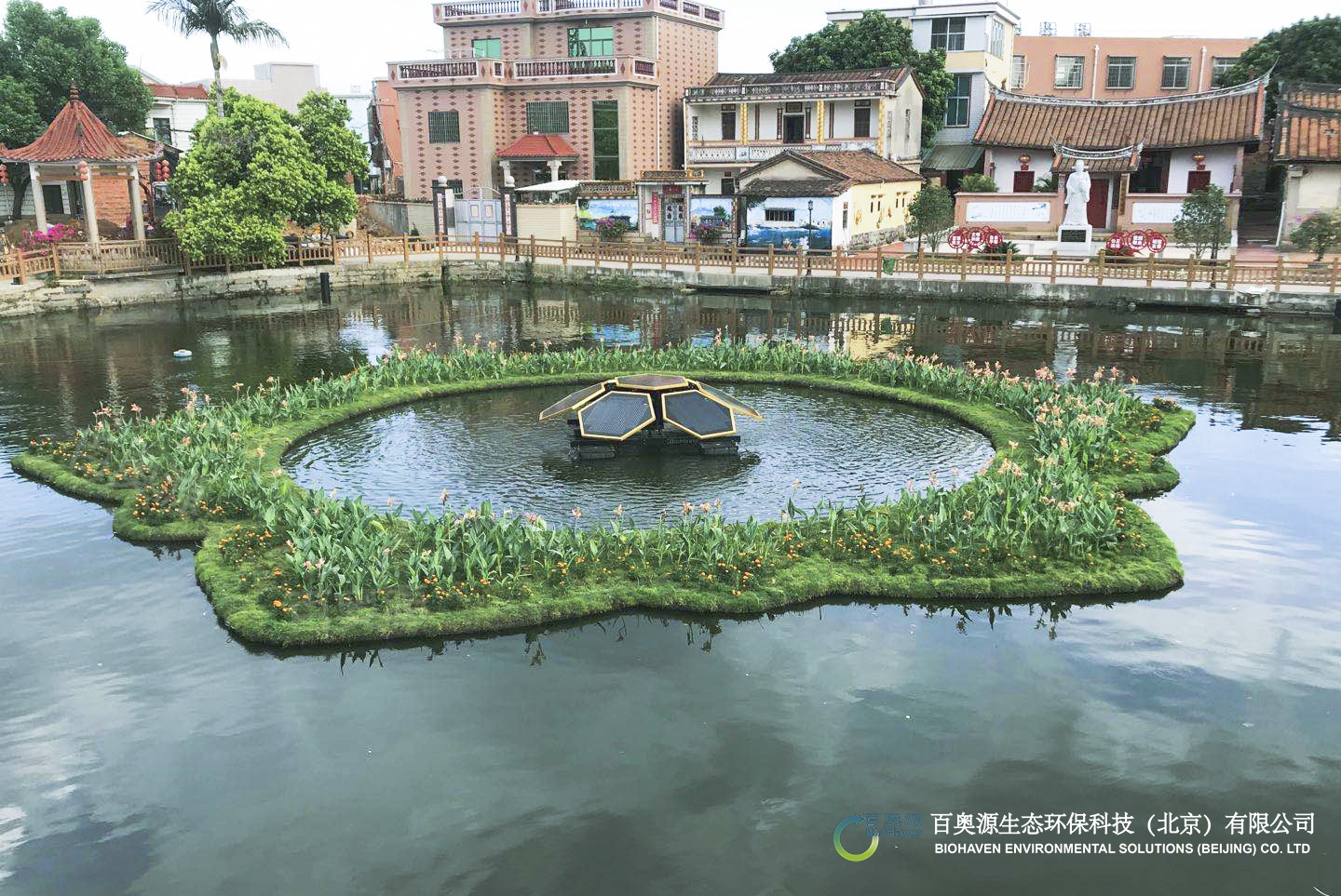 漳州角美鎮(zhèn)埔尾村祠堂大塘為白石林先生祠、進士牌及傳統(tǒng)民居等古建筑環(huán)繞,是埔尾村重要的水景觀節(jié)點,更是漳州臺商投資區(qū)廉政教育基地及埔尾村鄉(xiāng)賢鄉(xiāng)訓館的主要配套景點。埔尾村扎實推進鄉(xiāng)村振興戰(zhàn)略,在實施農(nóng)村污水收集處理工程的基礎上,結(jié)合截污納管、補水措施等工程,創(chuàng)新采用的浮動凈水廠技術,以生態(tài)手段同步實現(xiàn)水質(zhì)改善與景觀提升,打造大塘優(yōu)美水環(huán)境的目標,并與埔尾村古建筑景觀互映互襯,彰顯千年古村落的獨有生態(tài)之美。
